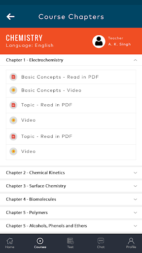 -Each topic have PDF and Videos. Student can read and watch.