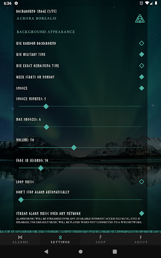 -Volume control and fade-in time for the music.