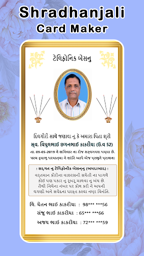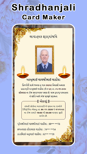 શ્રદ્ધાંજલિ - श्रद्धांजलि - Shradhanjali Card Maker (Condolence Card Maker, Tribute Card, श्रद्धांजलि, શ્રદ્ધાંજલિ) is Made with Love in India. Whose Aim is to provide our valuable users to create Condolence Card, Memorial Card, Tribute Card on Demise of our friends and family members instantly by using their smartphone without visiting any Photography Studio. As we all know that when our family member left us unexpectedly we don't have enough time to go to Photography Studio to make card for condolence, tribute, demise, Besnu, Shoksabha. This app is also known as e-card maker app for condolence, tribute, demise, Shoksabha, Besna, Besnu, Getting together for the memorial service.