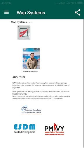 WAP Systems is a prop. firm. Founded in the 2008, the company is registered with RKCL , DOIT (Govt Of Rajasthan),MICRONET(PUNJAB) . WE have more than 250 BIOmetric attendance machines installed across over network of 220 centres .