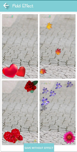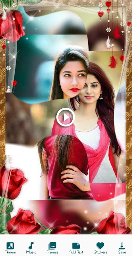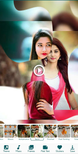 Select photo and choose theme,music,frame,sticker or add text then click on save after this you get new page here you can add special effect on your video or you can just click on save without effect. If you selected any effect click on download and apply.