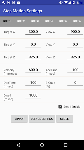 - The basic operation is based on the 6 step values set in Step Motion Settings.