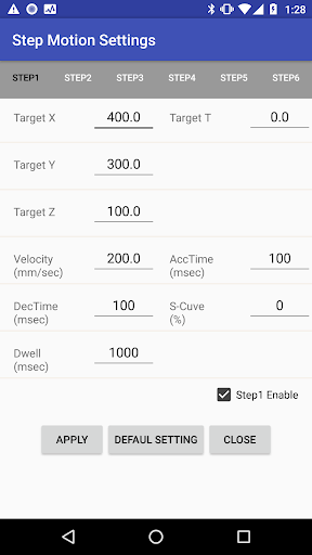 - The basic operation is based on the 6 step values set in Step Motion Settings.
