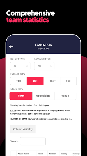 This is fantasy cricket 101. Identify the players that have a statistical advantage over the rest. Some players might not be as multi-dimensional and might not perform well in the ODI or test, but they might deliver a top gear performance in quicker game formats like T20. Player and team statistics can help you identify these patterns and ongoing trends to make educated decisions.