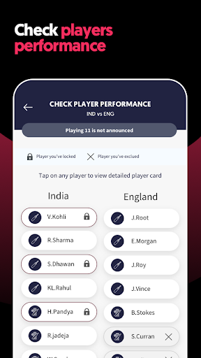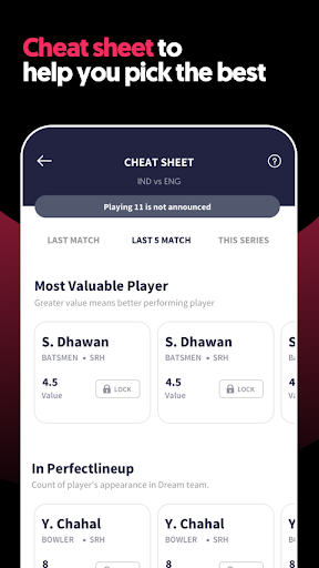 Perfect Lineup is a fantasy tool that will help you build winning fantasy teams for Dream11, My11Circle, FanFight, and similar fantasy cricket websites and apps. The app provides match predictions, tips, expert advice and so much more to ace your fantasy game.