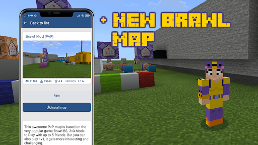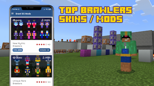 Brawl BS Star mods for Minecraft Pocket Edition: choose and install top brawlers skins and bs map in just one click. You will find a lot of characters of the popular game including legendary skin packs and also super rare, epic, mythic and others.
