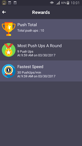 💪 fast statistics (your current average level of push-ups, current program, status and medals)