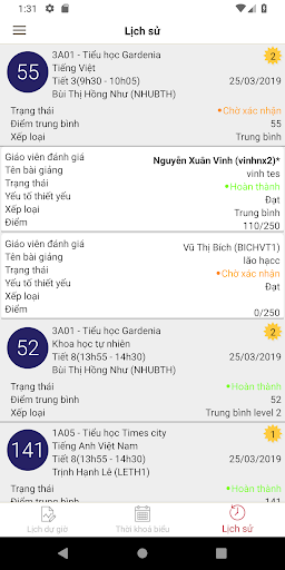 - Xem lại các kế quả dự giờ trong lịch sử, tổng hợp kết quả