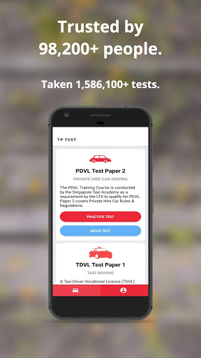 TP Test is a Singapore driving theory test practice app for Basic Theory Test (BTT), Final Theory Test (FTT) and Private Hire Car Driver Vocational Licence (PDVL) questions to get a driving licence. People are using TP Test to increase their chance of passing the theory tests on the very first try.