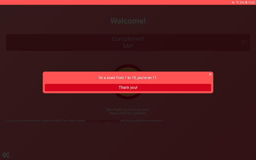 * Updates coming soon! We're working hard on bringing new features on this app, such as the ability to connect to your favourite social networks so you can send/receive compliments to/from your friends!