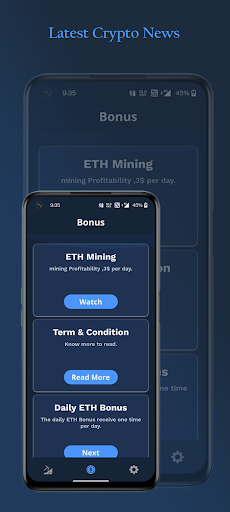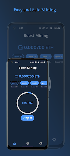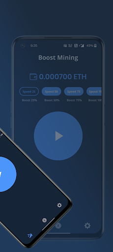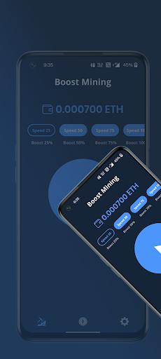 ETH Cloud mining is an opportunity to get ETH for free by managing cloud mining from your phone. The application as long as the ability to use a bantam amount of power allocated to mining and earn ETH while using the application. Accumulate ETH, speed up mining, become a part of the ETH mining world!