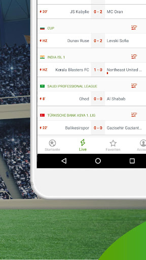 Mit der Live-Ticker.com-App bist du immer auf dem Laufenden, was Tore und Ergebnisse aus Ligen und Mannschaften angeht, die du als Favoriten markiert hast. Für sie erhältst du Alarme und Push-Benachrichtigungen.