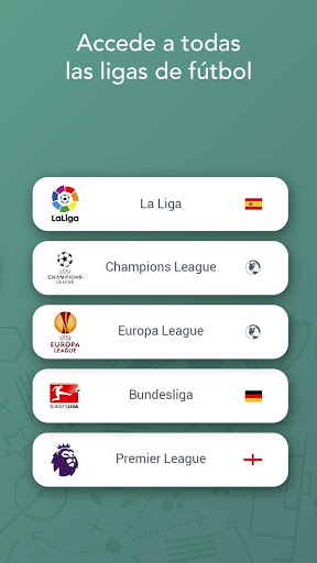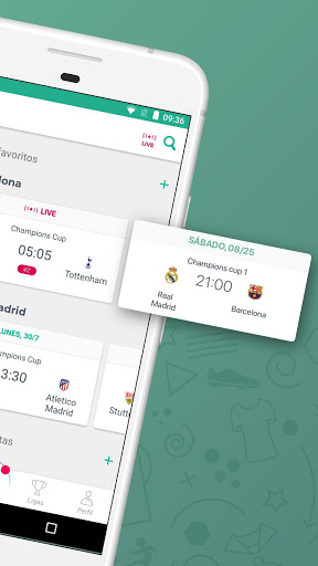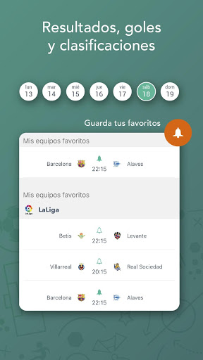 Elige entre multitud de competiciones de fútbol de todo el mundo o, simplemente, marca como favorito uno o más equipos de fútbol. De este modo personalizarás, según tus gustos, la información relativa a goles, partidos, clasificación, máximos goleadores o alineaciones que verás en la app o recibirás mediante notificaciones y alertas.