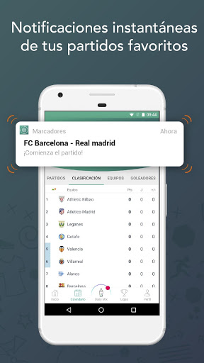 Descarga gratis la app Marcadores.com y sigue el resultado de todos los partidos de fútbol en directo de tus ligas favoritas. ¿Quieres saber si tu equipo ha marcado un gol?, ¿si quedan pocos minutos para el final del partido?, ¿si el equipo rival está perdiendo su partido y perderá posiciones en la clasificación? En Marcadores.com podrás configurar tantas alertas como desees y la misma app te notificará en vivo cuando haya novedades en los partidos de fútbol que más te interesan.