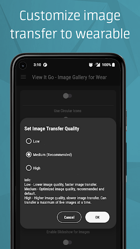 ▪️ Image transfer from mobile to the wearable device, automatically optimizes the images for the wearable devices