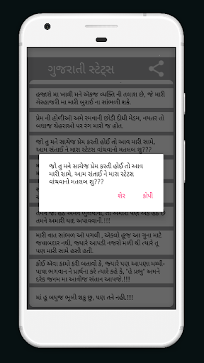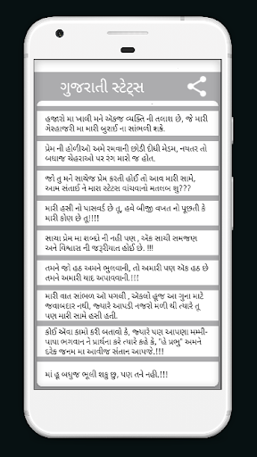 -> Gujarati status is app with fresh collection of status , more than 30 Category you can choose best status ever. also you can share status with whats-app directly and you can send message directly to your loved one.