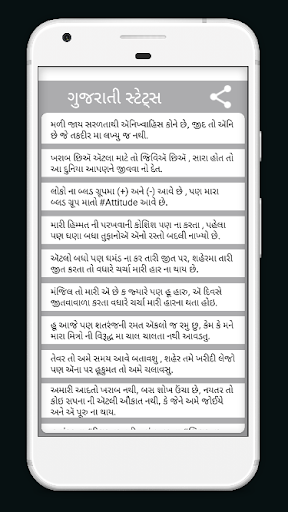 Gujarati Status app having latest and fresh collection of Gujarati suvichar for for social network like whatsapp, facebook, google, twitter.