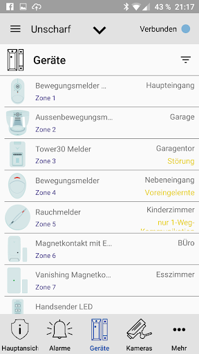 - Die Alarmanlage scharf und unscharf schalten