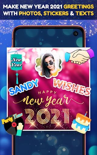You can add your photos in to 2021 new year photo frames.. ad text, stickers and decorate it with beautiful backgrounds.
