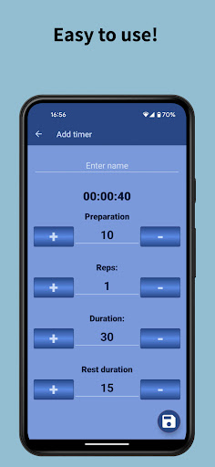Just select the number of repeats, training duration, and rest time to make the Tabata Timer work.