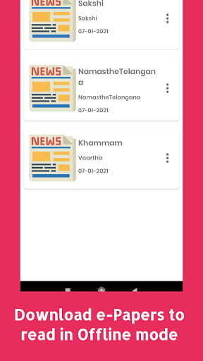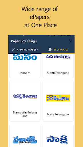 Telugu News Papers Android application brings together all the major Daily Telugu News Papers published in Andhra Pradesh and Telangana states to easy way to read users mobile phones. Users can access, read and save & Download their Daily Telugu News Paper published daily as e Paper.