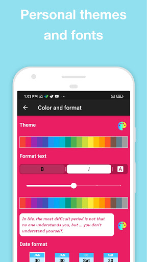 Use "Diary with lock free" app to make your own personal journal of daily events, appointments, secrets and feelings.
