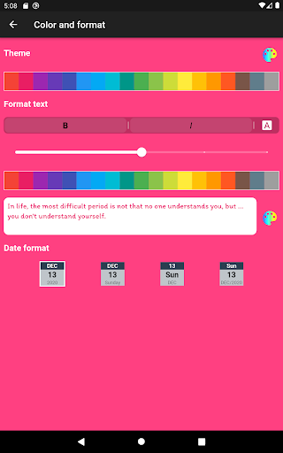 This diary app can easily fit the purpose of a writing down your memoir or chronicle. Keep a log or logbook to record history. Do like famous Anne Frank, make daily records, document life in your own daybook.