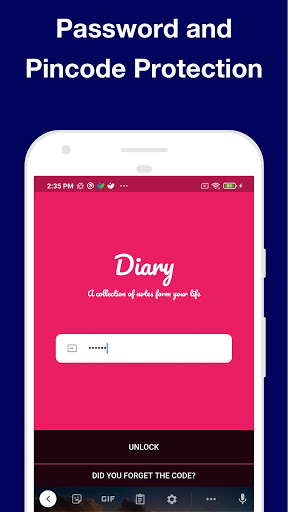 Never forget a journal entry again, setup a reminder to alert you when it is time to write. Protect all personal notes by adding a pin code when it starts up. Never worry about losing memories again. Easily send a backup of diary entries directly to email for extra protection.