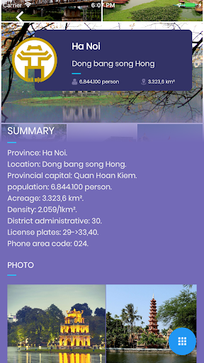 The App provides you with useful information about tourism for Vietnam's provinces and cities. It's great if you go somewhere to travel and hold an app in your hand. You will know all the places to travel, eat, and shop there. Supporting 2 languages is English and Vietnamese