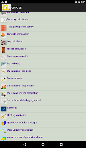 In this application more than 150 formulas and tables is used. The range of calculations will be continuously expanded. You can submit your suggestions what calculations for the construction you need.