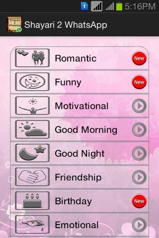 Here provides top Free Android Apps. 10,000+ users downloaded Shayari To WhatsApp latest version on 9Apps for free every week! The app has also been given a bit of a visual makeover, too This hot app was released on 2015-09-17. You can also find some other similar apps here.