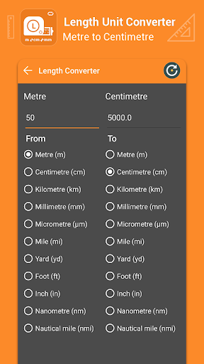 All length unit converter. This app is using to converting Length from Meter to Centimeter as well as converting Length from Centimeter to Meter.