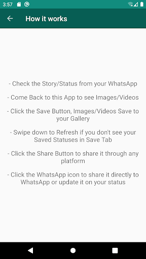 ✔ Application is used to spare the story or spare the status legitimately from WhatsApp. You can say the Status saver for WhatsApp.