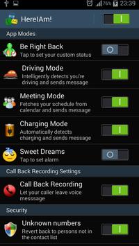 Please note that HereIAm! is preference based app. Its features are prioritized according to the order they appear in the app UI. If both "Be Right Back" and "Driving Mode" are set, it is the "Be Right Back" which will be always picked up.