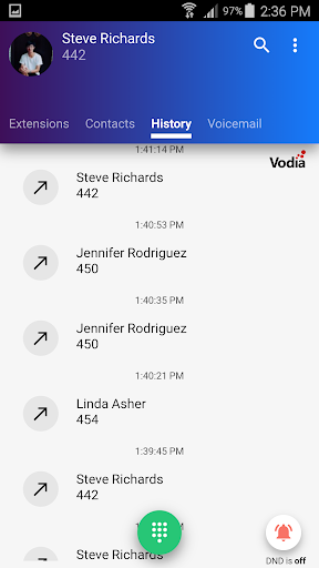 Vodia Phone app is a free add-on for your Vodia PBX that lets you connect to your account on your Vodia PBX. The Vodia Phone app offers a simple and intuitive user interface that puts your contacts and individual call history at your fingertips while providing a rich user presence. Also, starting with Android 5.0 Lollipop, based on the WebRTC technology, you can place VoIP calls over WiFi or 3G at no cost, with a rich audio quality for a superior mobile VoIP experience.