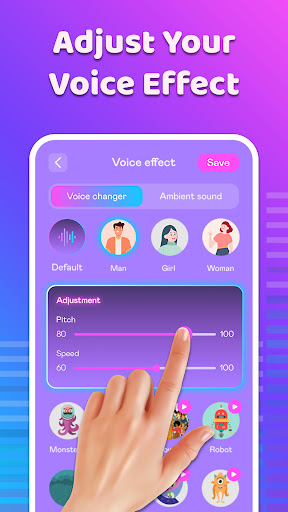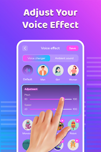 You can choose effects: man voice, girl voice, monster voice, robot voice, and many other fancy sounds