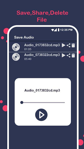 ✓ Share the saved audios to your friends via Bluetooth, or social networks.