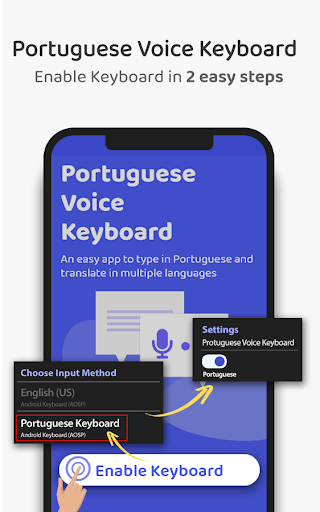Download this combo of Portuguese voice keyboard and English Voice Keyboard app, follow instructions from above guidelines, if you still face any issue than inform us, so that we can fix it as soon as possible.