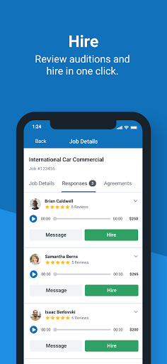 • Review talent profiles, auditions, and reviews before hiring in just one click.