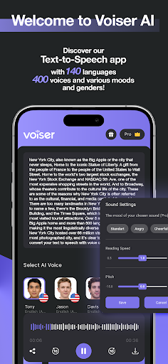 Text-to-Speech App that allows you to create realistic and engaging audio content. You can choose from over 400 voices in 140 languages, including genders and voices with emotion, so you can find the perfect voice for your project.