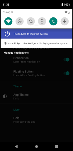 with lock screen widget you will be able to lock your mobile screen without needing to press the power button, all you need is to click on the widget you place on the home screen or use floating button or click no the silent notification on your notifications menu, also you can unlock with fingerprint or face unlock