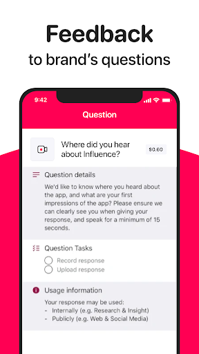 The Influence app is a simple way to make money from expressing your views on products, services, ads and more! Brands ask the questions and offer cash to show their appreciation of your opinions. Our paid surveys for cash connect brands and consumers and help everyone involved.