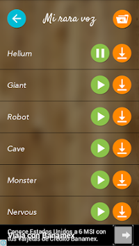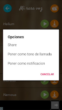 Diviertete agregandole efectos de sonido a tu voz. Cambia tu voz por la de un Monstro, Robot, Borracho, Ardilla, etc. Puedes guardar tus voces o ponerles como tono de llamada o notificacion.