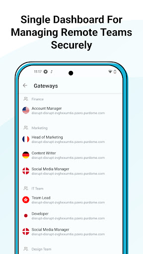 Add and remove team members from your network, create multiple teams and manage permissions via a simple and easy-to-use centralized dashboard. The centralized dashboard ensures complete control with zero security risks.