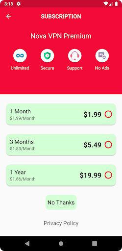 Nova VPN encrypts your Internet connection so that third parties can’t track your online activity, making it more secure than a typical proxy, make your Internet's safety and security, especially when you using public free Wi-Fi.