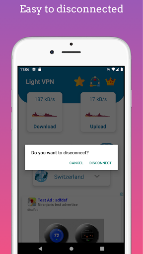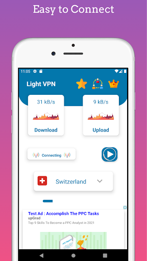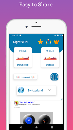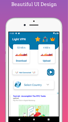 Light VPN app with is very fast and secure vpn app with unlimited bandwidth and lot of secure servers in this app when you click on select option you can see vpn server lists. In this app you can connect any country server on only one click. when you connect with any server you can see kbs speed now You can easily unblock websites and gain access .