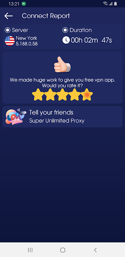 You can connect to fastest VPN proxy servers from around the world. More VPN proxy servers are added to VPN list constantly. Experiencing not ideal VPN connection speed? Don’t worry, simply reconnect VPN proxy server will normally solve VPN problem. VPN Unblock is one of the fastest VPN proxy service providers on Play Store!