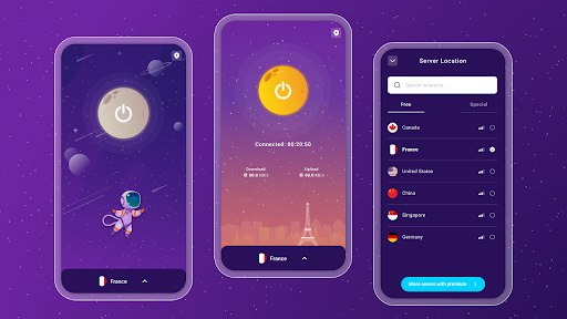 - Beautiful and simple design . We have designed the app regarding material design methods with space and moon theme. VPN Is easy to use and also it's beautiful.