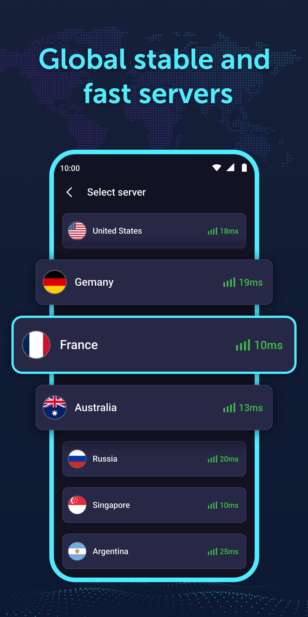 3.Global servers:VPN servers are located all over the world, providing a fast and stable user experience.