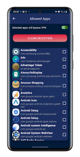 Our app also contains a built in kill switch so if your connection does get cut off, it will stop your data until you are reconnected to the VPN service again. Also included is a VPN Bypass. Select the apps you wish to run through your normal connection whenever you like.